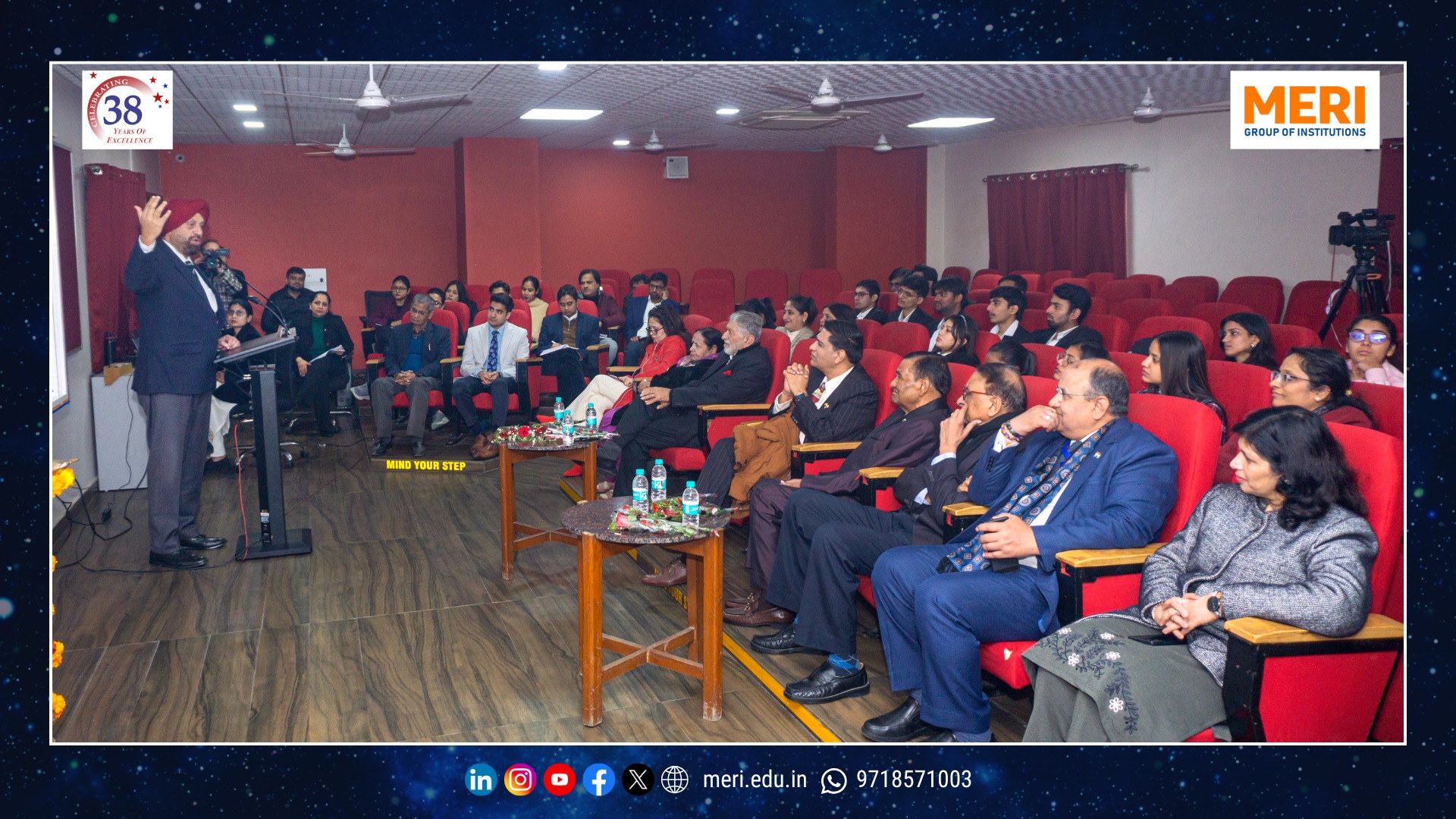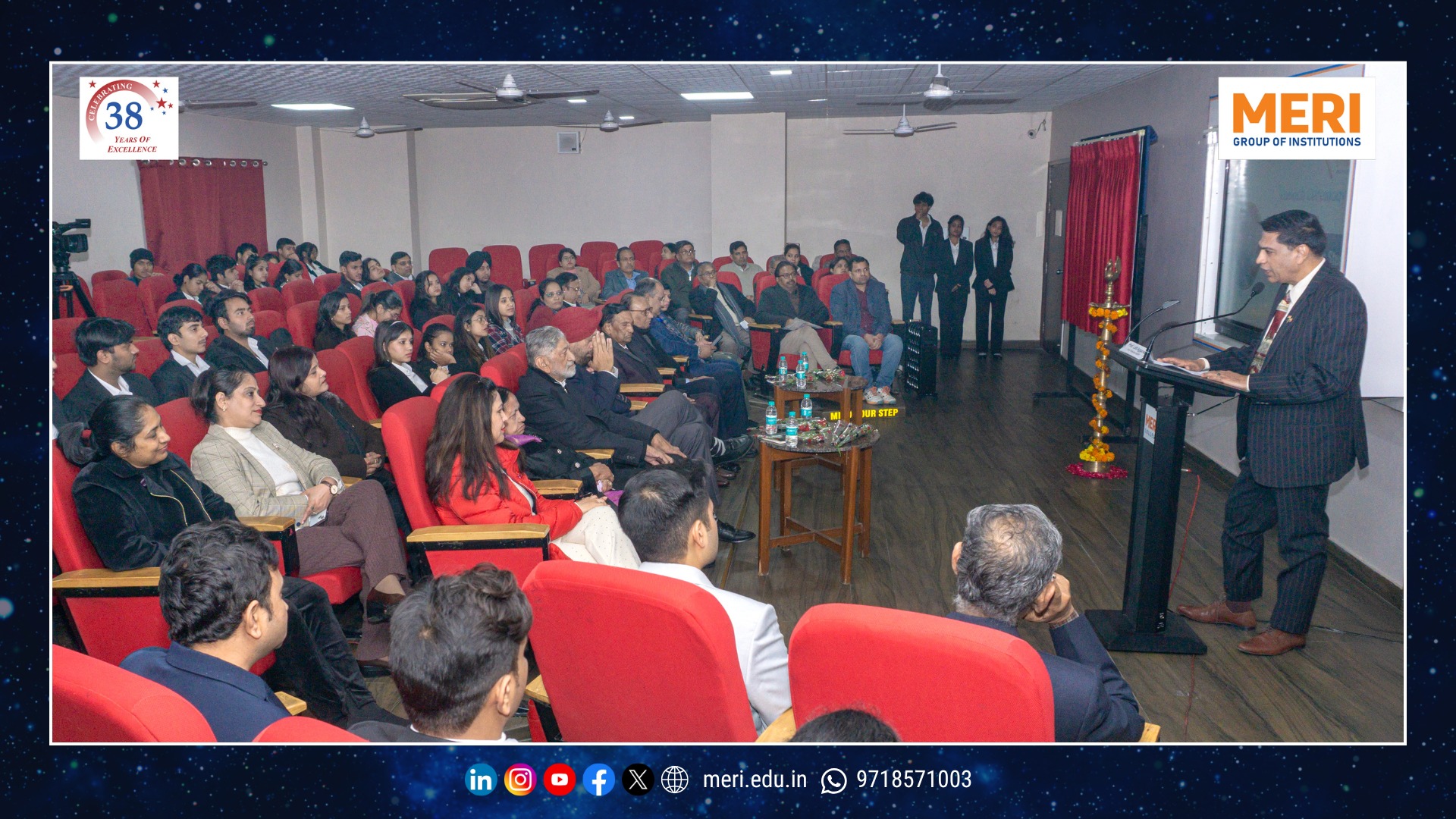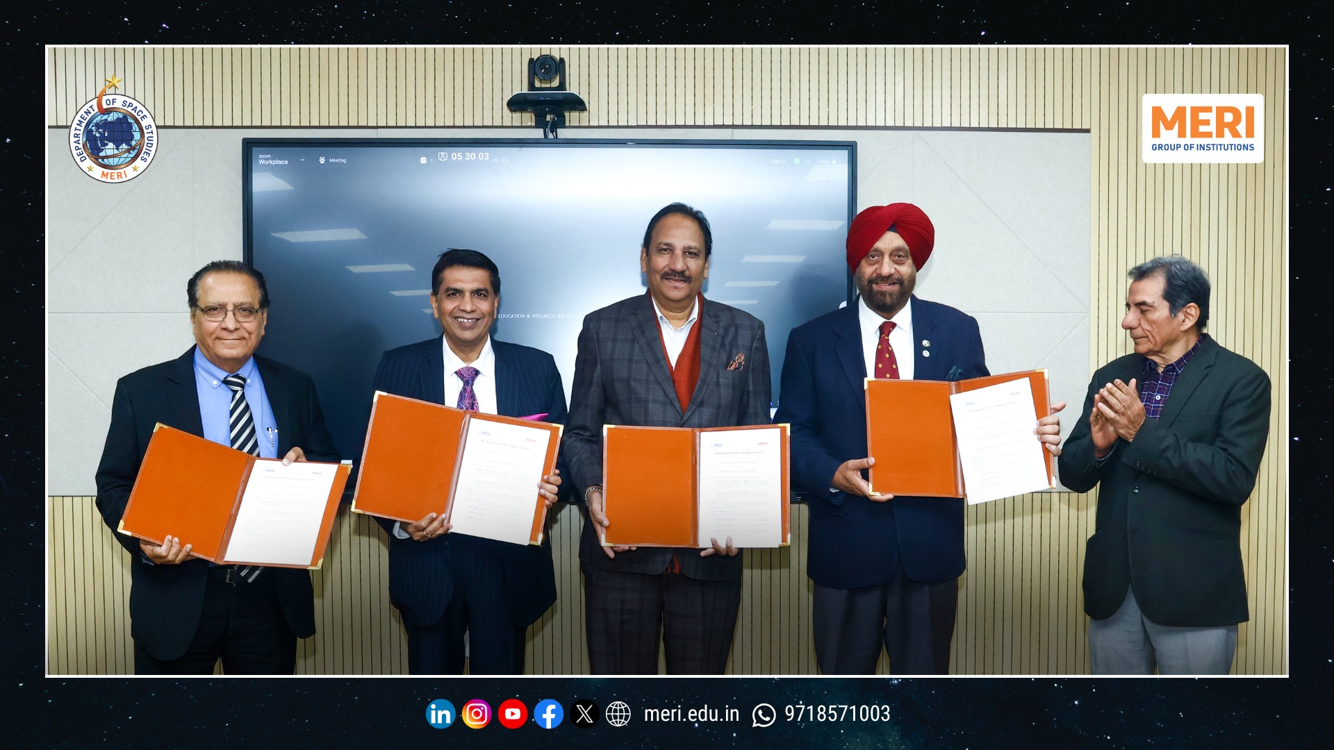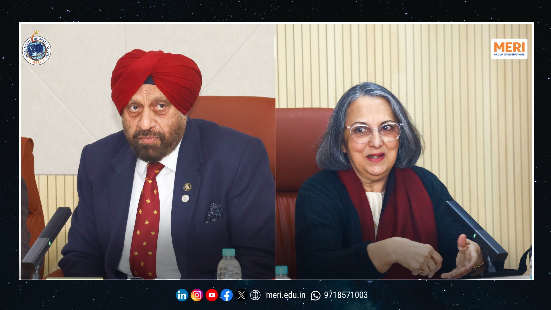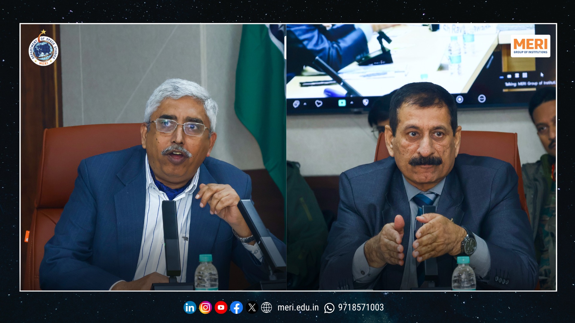 The Management Education and Research Institute (MERI) marked a key academic milestone with the launch of its Department of Space Studies, inaugurated by Sh. I. P. Aggrawal, Chairman, MERI Group of Institutions. Held with strong academic enthusiasm, the programme reaffirmed MERI’s commitment to futuristic and interdisciplinary education. The unveiling of the department’s digital logo highlighted the expanding scope of space science—integrating technology, management, policy, and innovation in alignment with India’s emergence as a techno-economic power.